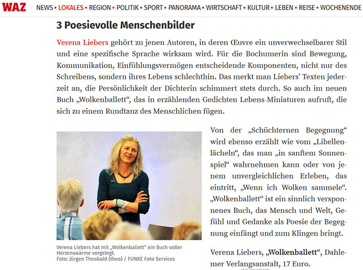 Wegen der Maßnahmen zur Bekämpfung der Corona-Pandemie ist das derzeit undenkbar. Die Beteiligten – neben dem Geigenbaumeister und der Autorin, die ihren Lyrikband »Wolkenballett. Poesie der Begegnung«, der dieser Tage erscheint, vorstellt, Liebers‘ Mitstreiter von der »VIGLis Wanderbühne« – präsentieren ihr Programm mit »Poesie und Musik zum Entspannen und Lauschen« am morgigen Donnerstag auf dem Parkplatz der GLS-Bank an der Christstraße.